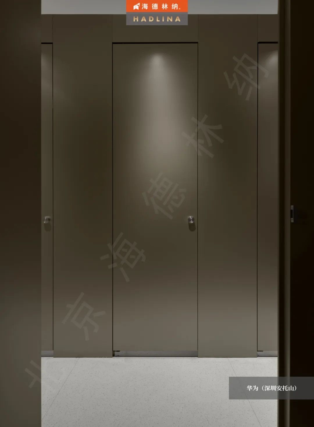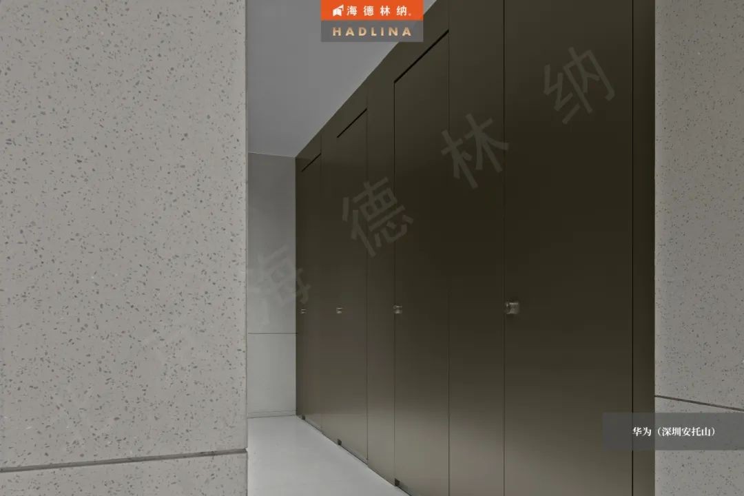 華為(深圳安托山)項目采用36mm厚度的香檳金不銹鋼板材,擁有優異硬度和強度,既有良好的防撞性能,能有效抵抗外力沖擊。A級防火,能有效隔離熱源和阻止火勢蔓延,提高公共衛生空間的安全性。不銹鋼的材質具有優秀的耐腐蝕特性,能夠抵抗濕氣、污漬和化學物質的侵蝕,擁有極長的使用壽命。