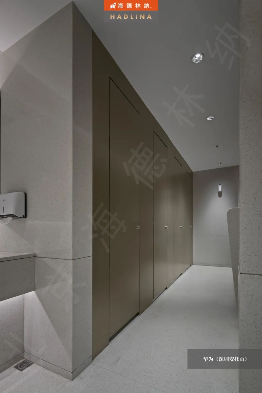 海德林納??與華為達成戰略合作,為其提供公共衛生空間的產品和服務,主要工程案例有上海華為、廣州華為、深圳華為、沈陽華為、東莞華為大同華為等。